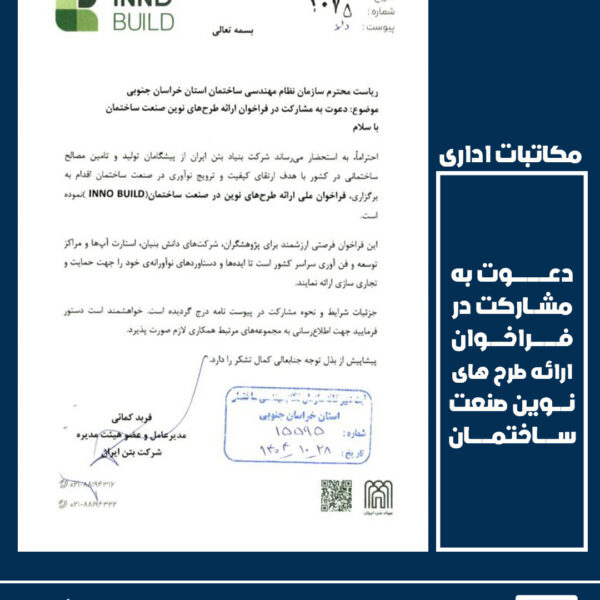 دعـوت به مشــــارکت در فـراخــوان ارائه طرح های نـوین صنعت ســاختمــان