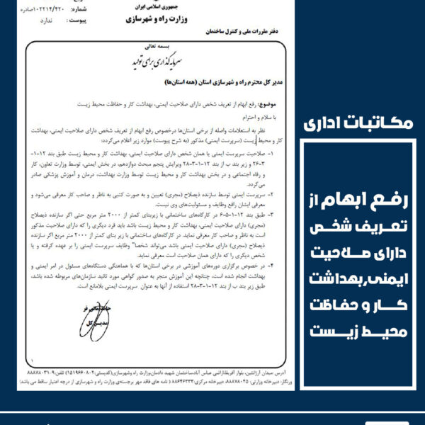 - رفع ابهام از تعریف شخص دارای صلاحیت ایمنی،بهداشت کار و حفاظت محیط زیست