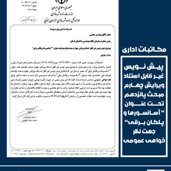 - انتشار پیش نویس ویرایش چهارم مبحث پانزدهم جهت نظرخواهی