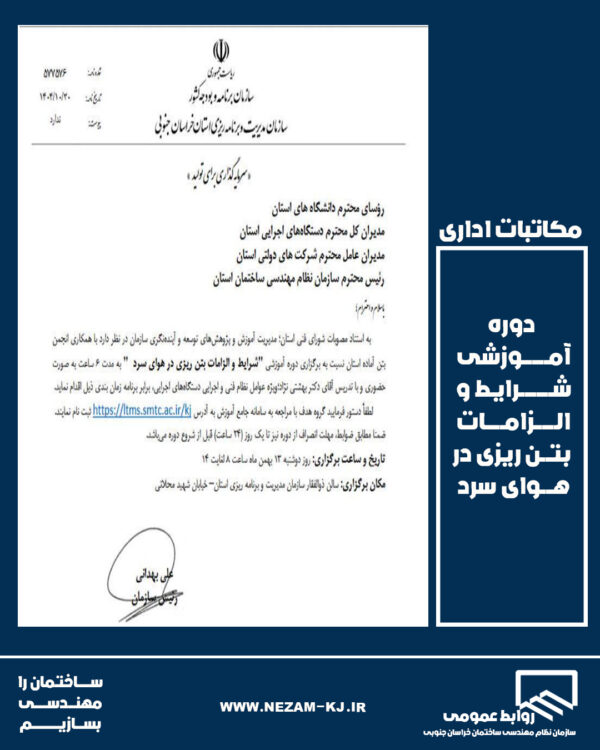 دوره آمــوزشی شـرایـط و الزامــات بتــن ریزی در هــوای سرد