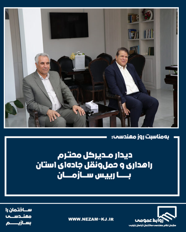 به‌مناسبت روز مهندسی، دیدار مدیرکل محترم راهداری و حمل‌ونقل جاده‌ای استان با رییس سازمان